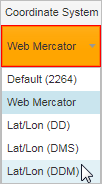 On the Find Location tab of the toolbar, in the Coordinate Tools section, click the Lat/Lon drop-down list.